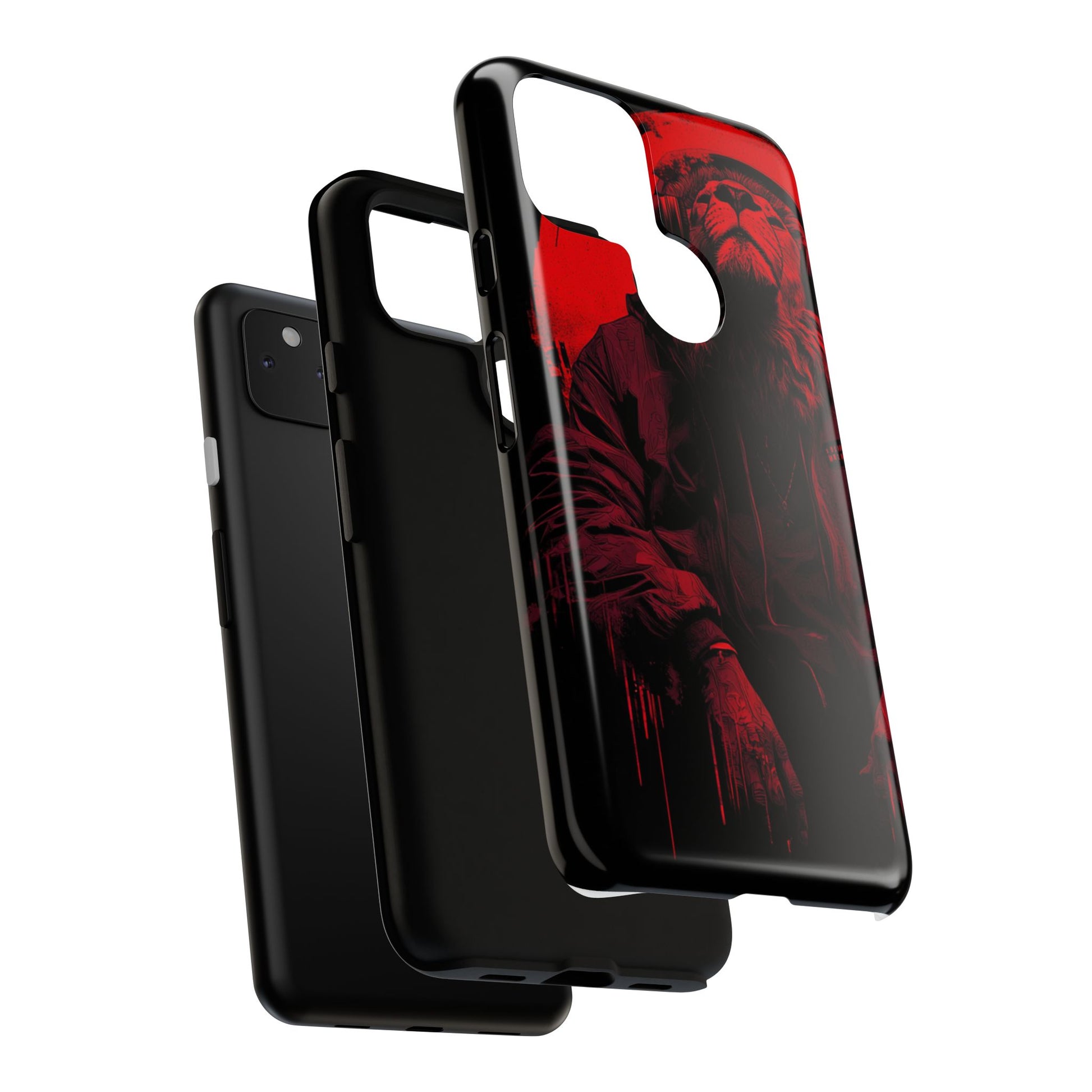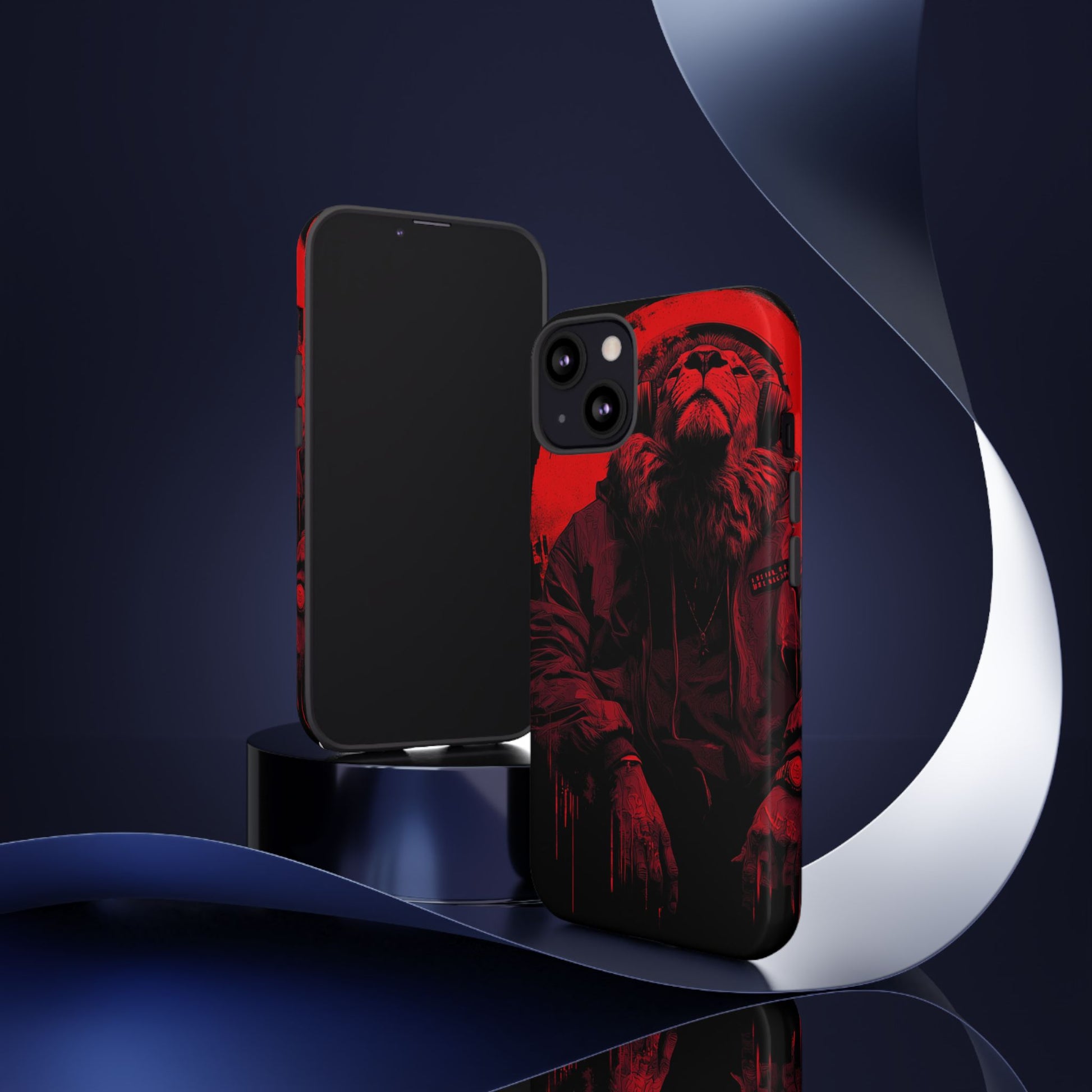 The Black Lion REALZ 90 Bold Phone Case is the definition of silent dominance. Featuring a regal lion in full streetwear armor, eyes lifted, headphones on — this case exudes calm intensity and boss-level confidence. Set against a blazing red backdrop, it's not just a case — it’s a presence.