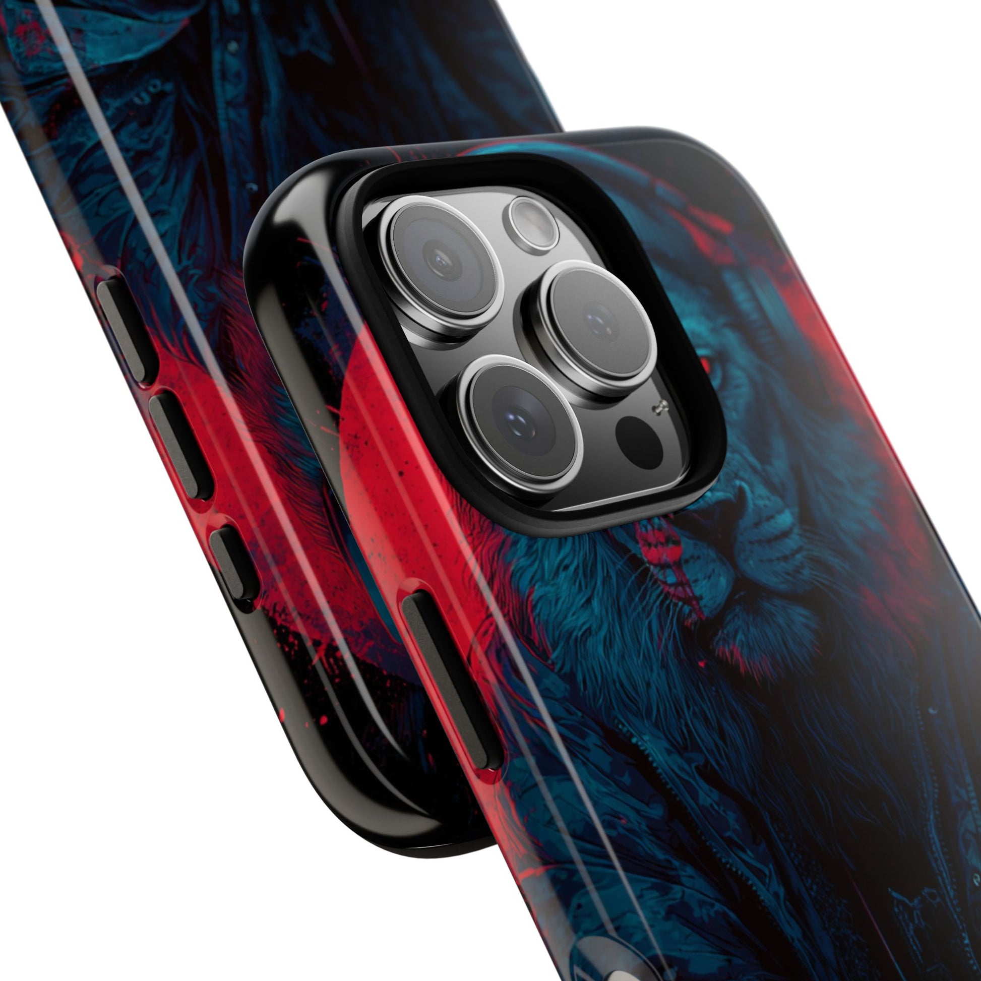 The Blue Lion REALZ 90 Bold Phone Case is for those who lead in silence but leave a mark wherever they go. Featuring a striking blue lion with fiery red accents and studio headphones, this case brings regal calm and fierce creative energy into the palm of your hand.