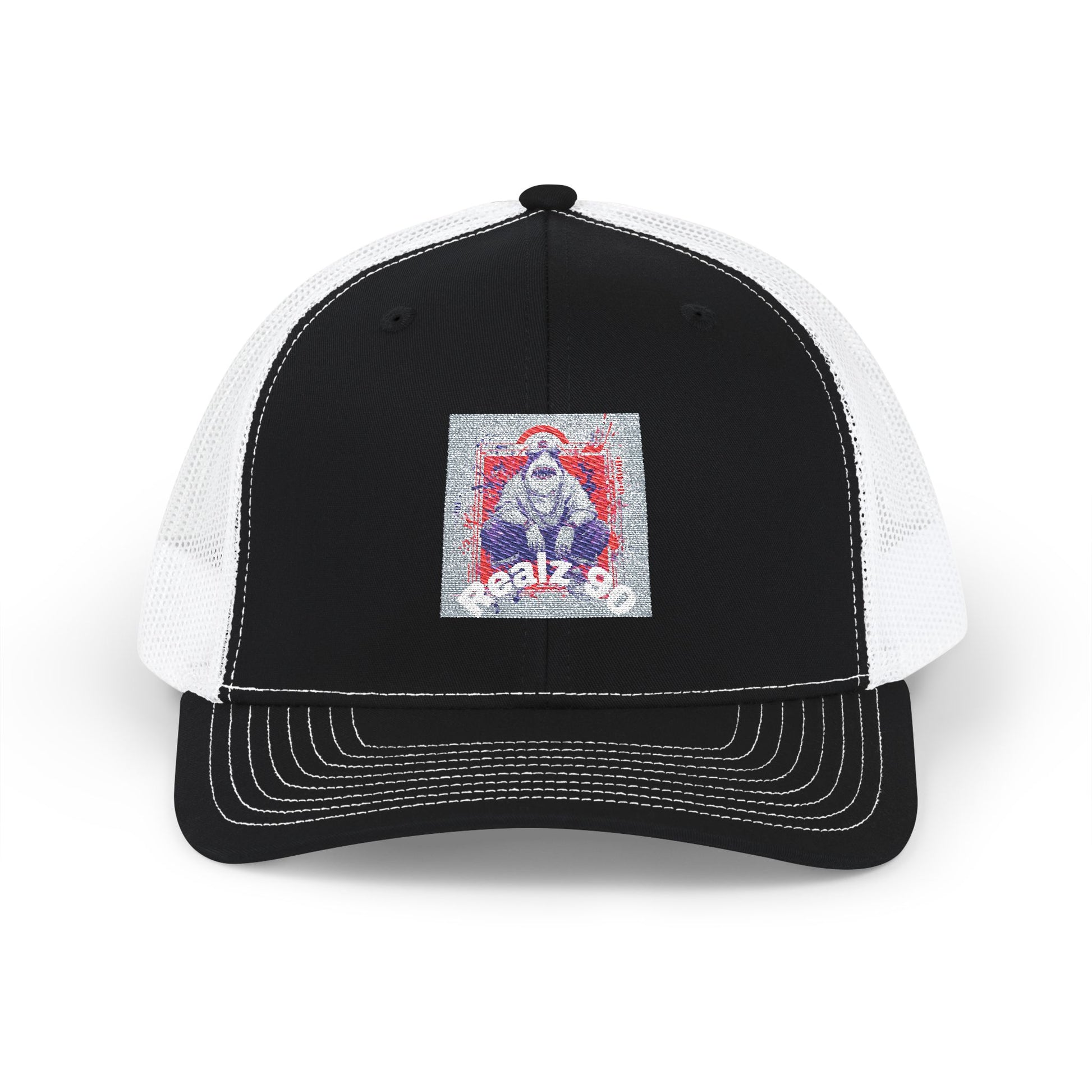 The Shark REALZ 90 OG Snapback Trucker Cap is for the bold, the unique, and the ones who don’t swim with the crowd. Featuring a fierce street-style shark graphic dripping with attitude, backed by a splattered red frame and the iconic REALZ 90 logo curved below — this hat is more than headwear. It’s a warning label.